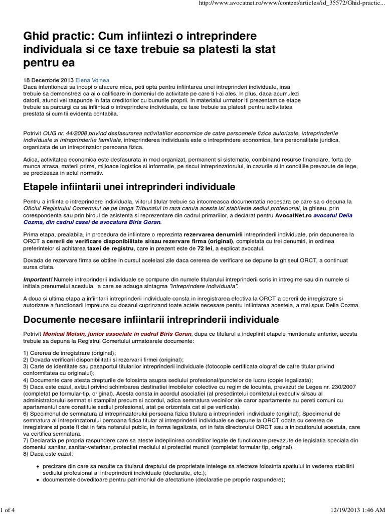 Ghid Practic Cum Infiintezi O Intreprindere Individuala Si Ce Taxe Trebuie Sa Platesti La Stat Pentru Ea Html Printpage 1 Setwindowname Sheapopupwnd