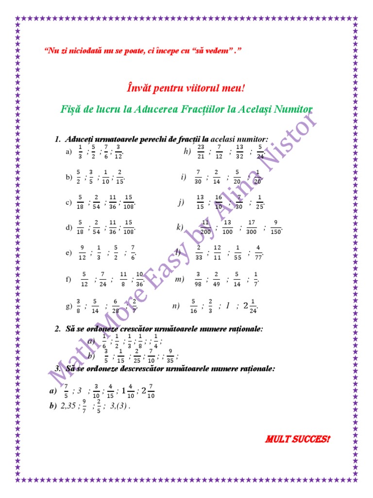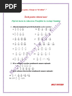 Fisa De Lucru Aducerea Fractiilor La Acelasi Numitor