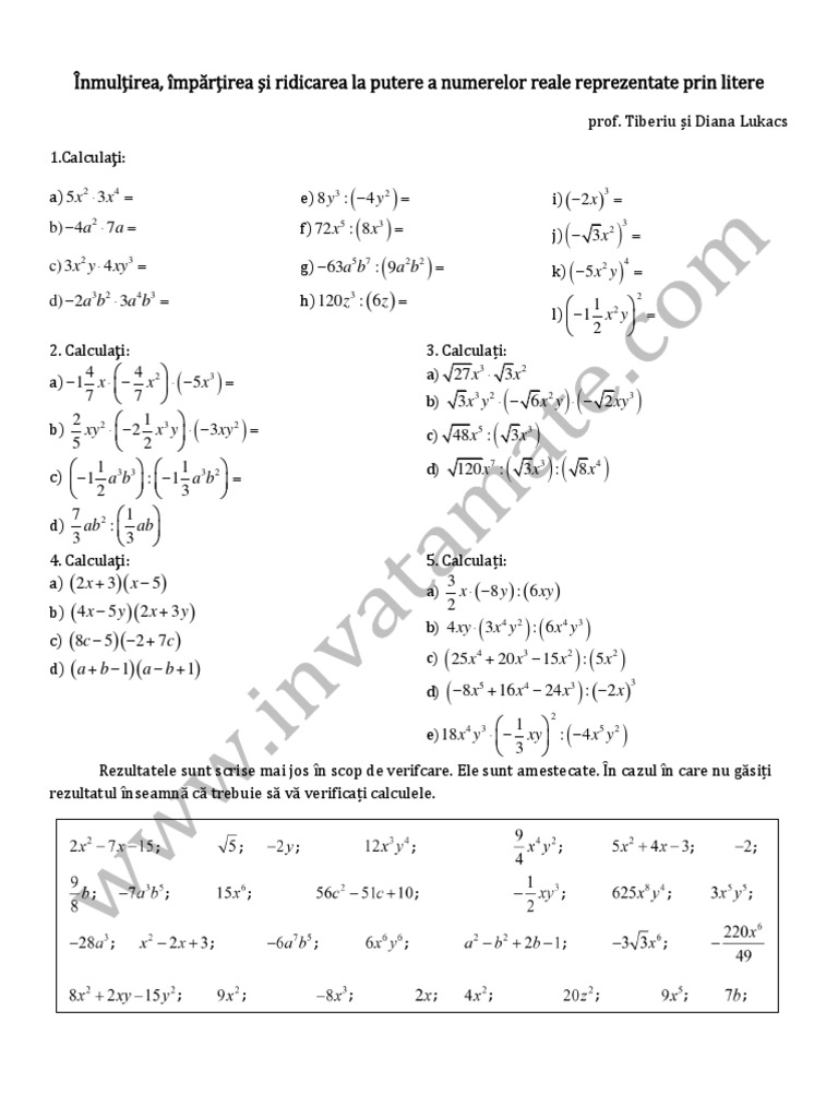 Inmultirea Impartirea Si Ridicarea La Putere A Numerelor Reale Reprezentate Prin Litere