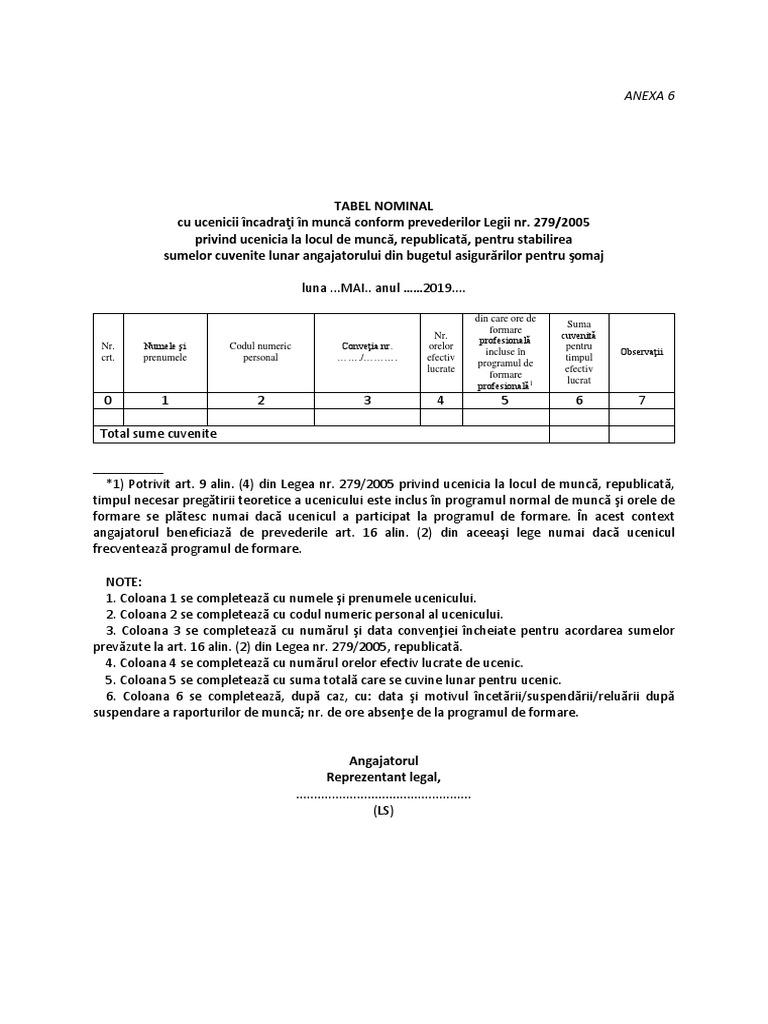 Anexa Nr 6 Tabel Nominal Lunar