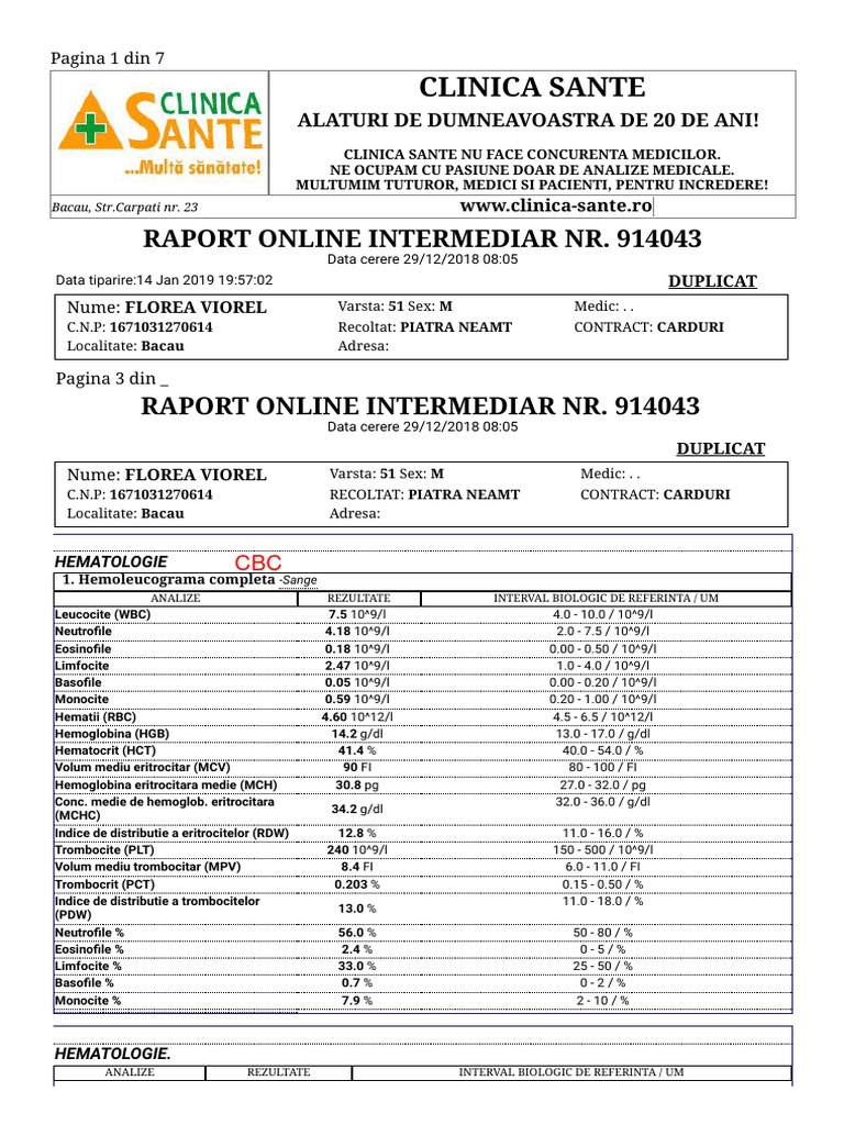 Clinica Sante Piatra Neamt Rezultate Analize