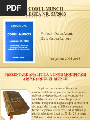 Http Www Mmuncii Ro J33 Images Documente Legislatie 2018 2018 04 13 Legea 53din2003 Republicata Codul Muncii Pdf