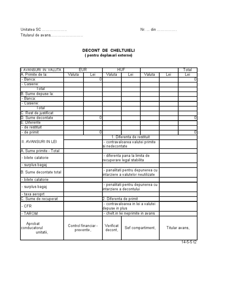 Decont De Cheltuieli Externe Si Internationale Contabilitate Fiscalitate Monografii Contabile