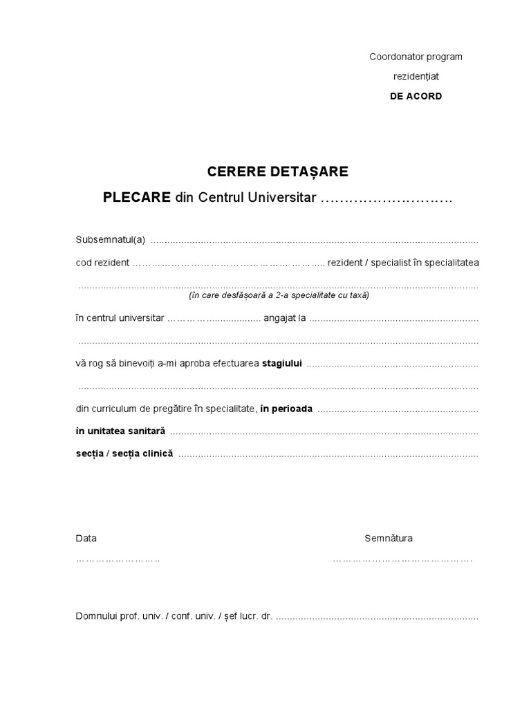 Cerere Detasare Rezidenti Pdf