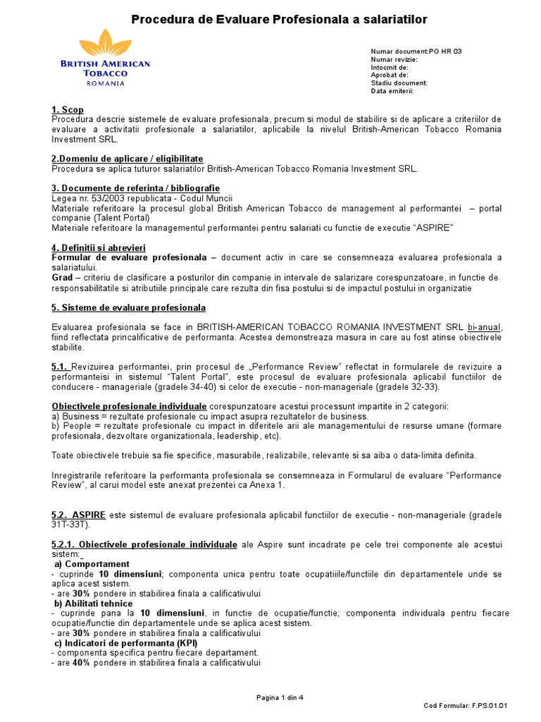 Evaluarea Profesionala A Salariatilor Procedura Si Anexe