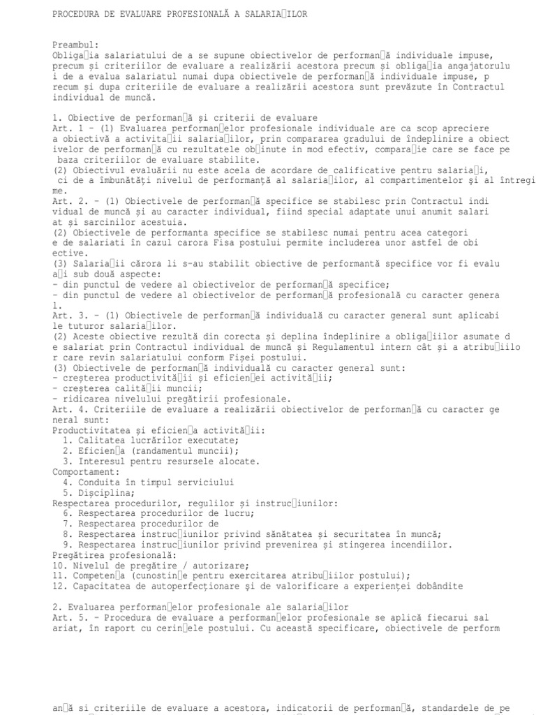 Criteriile Si Procedurile De Evaluare Profesionala A Salariatilor