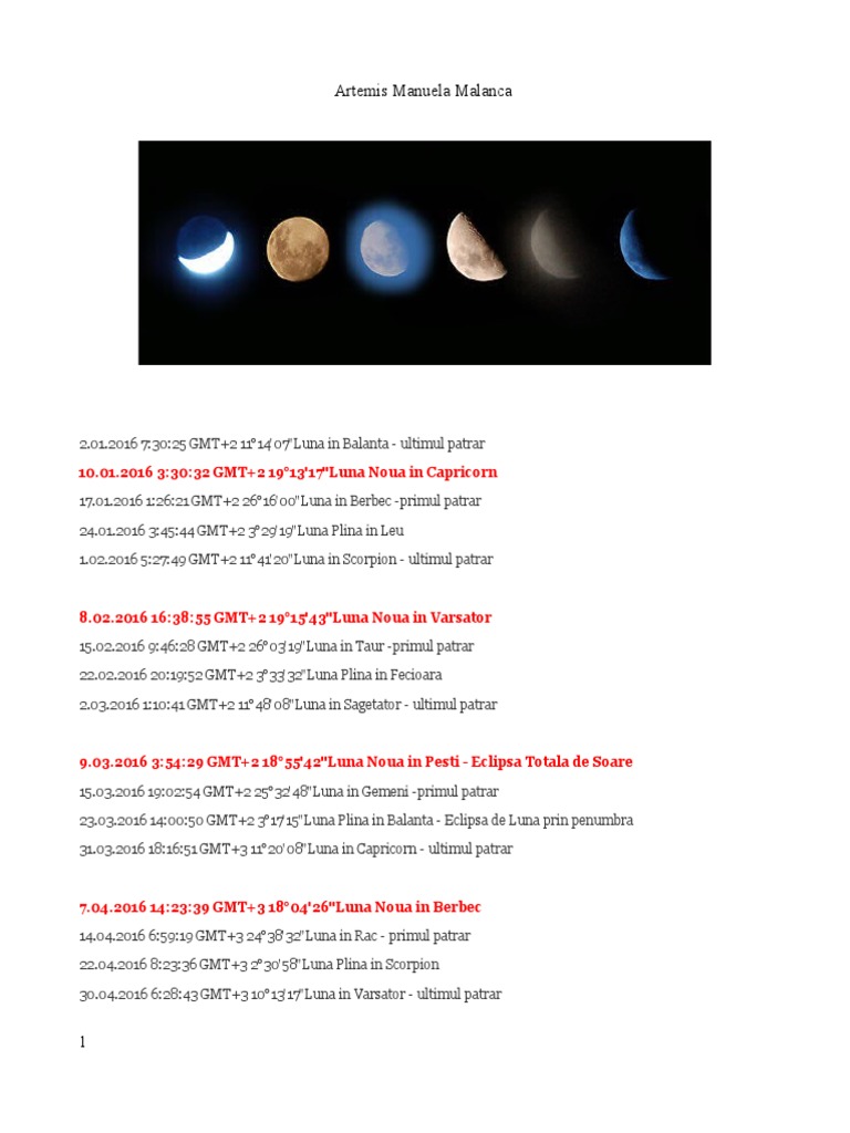 Universul Sacru Al Iubirii Calendar Cu Fazele Lunii Pe Anul 2016