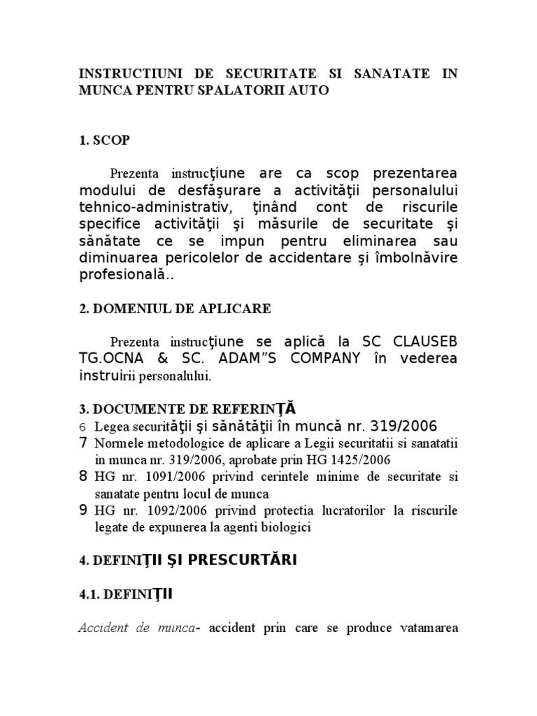 Instructiuni Ssm Pentru Spalatori Auto