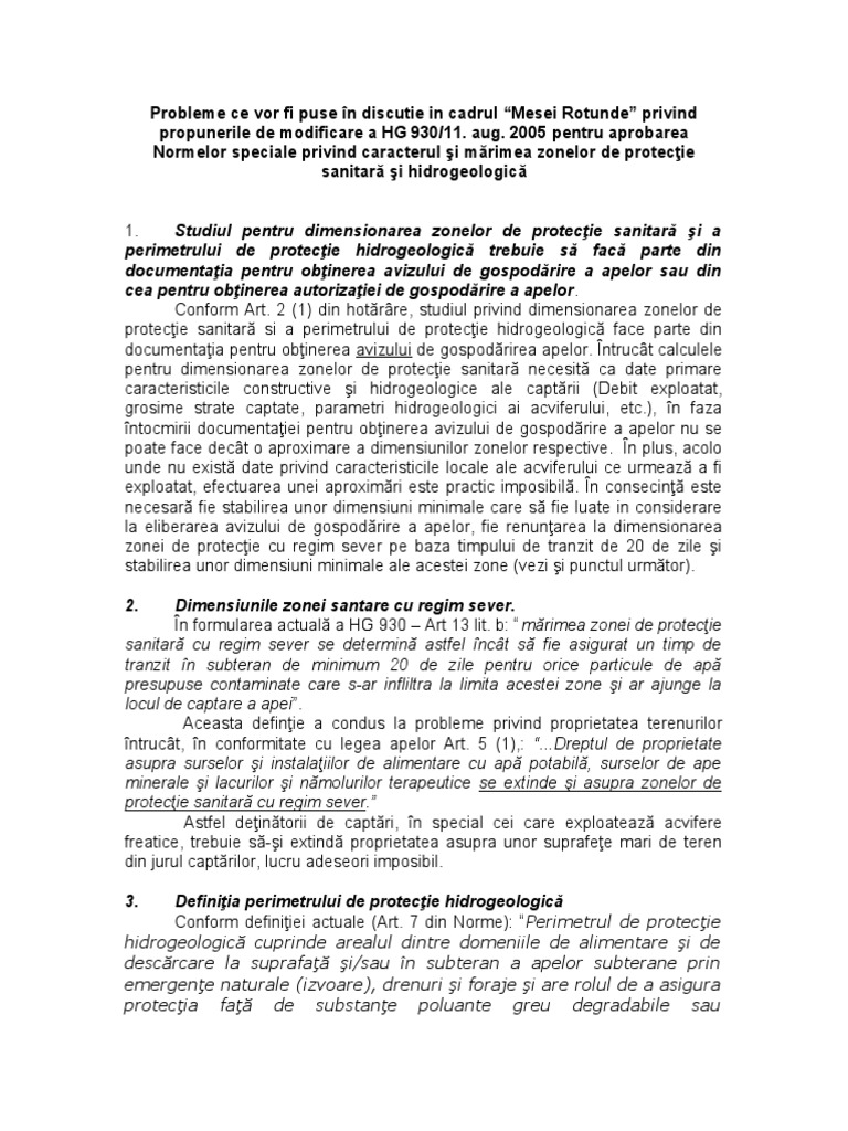 Hg 930 2005 Zone De Protectie Sanitara Si Hidrologica