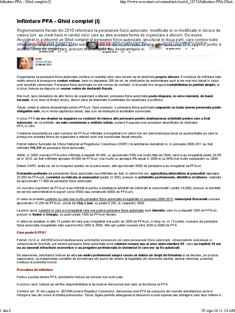 Infiintare Pfa Ghid Complet I