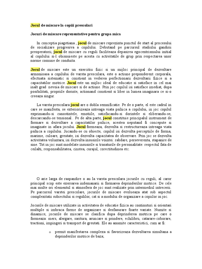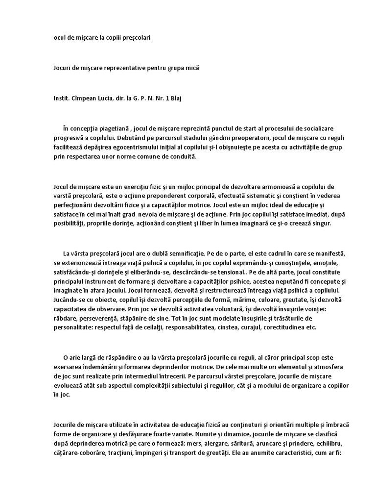Jocuri De Miscare Reprezentative Pentru Grupa Mica