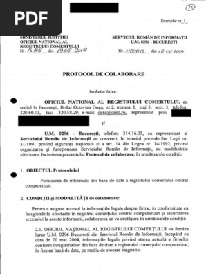 Protocol Serviciul Roman De Informatii Sri Um 0296 2004 Cu Onrc