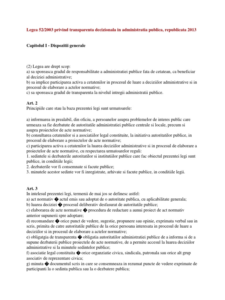 Legea 52 2003 Privind Transparența Decizională In Administrația Publică Republicată 2013 Departamentul Pentru Romanii De Pretutindeni