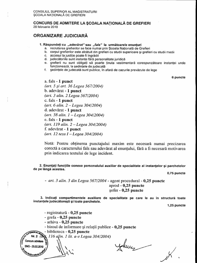 Documentul Organizare Judiciară Admitere Grefieri