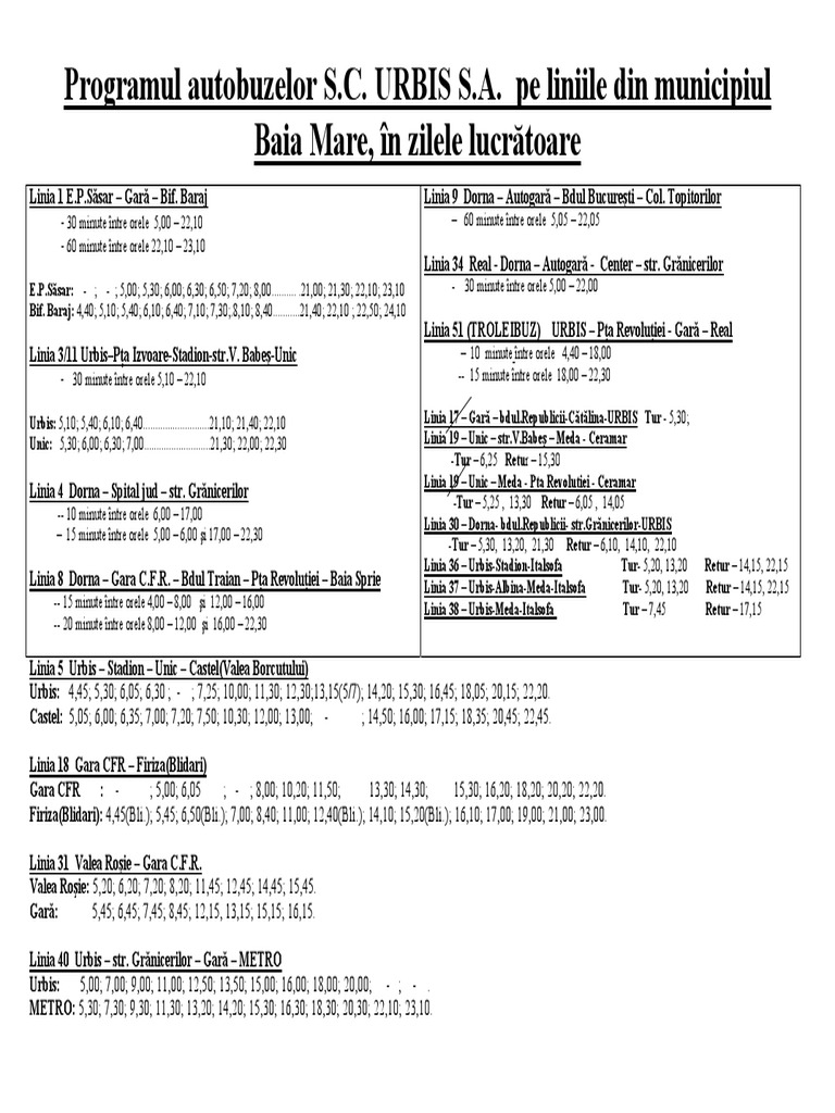 Programe Autobuze Urbis 05 10 2009