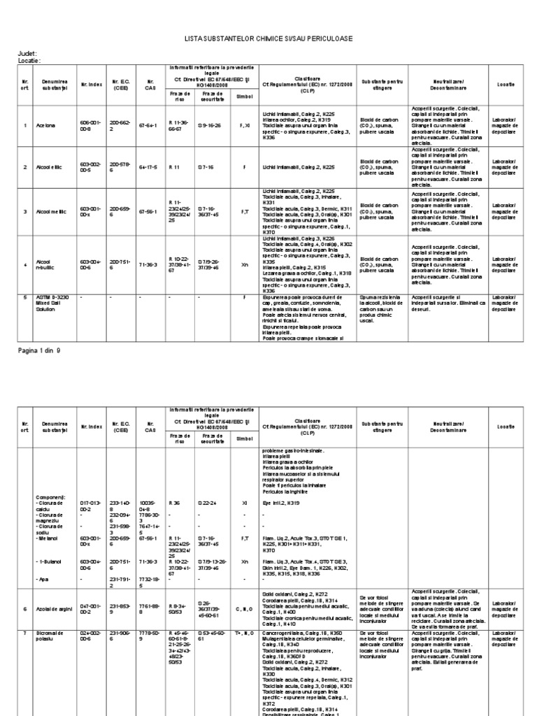 Adresa inaintare lista substanţe chimice periculoase la itm modele pentru evidenţele substanţelor chimice prevăzute de legislaţia ssm.