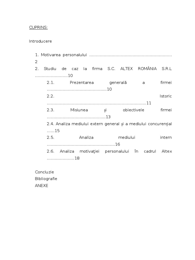Motivarea Personalului Studiu De Caz La Firma Sc Altex Romania Srl Proiecte Ro