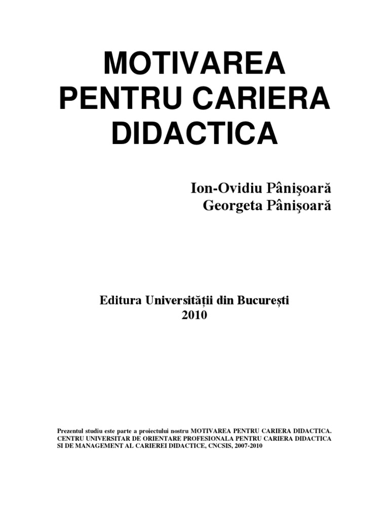 Motivarea Pentru Cariera Didactică Editura Universității Din București