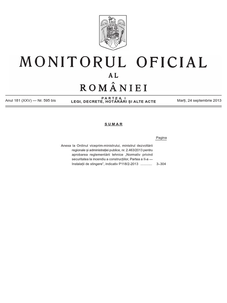 P 118 2 2013 Normativ Privind Securitatea La Incendiu A Constructiilor Partea Ii Instalatii De Stingere Actualizat Cf Ordinului 6 026 2018 M D R A P Emag Ro