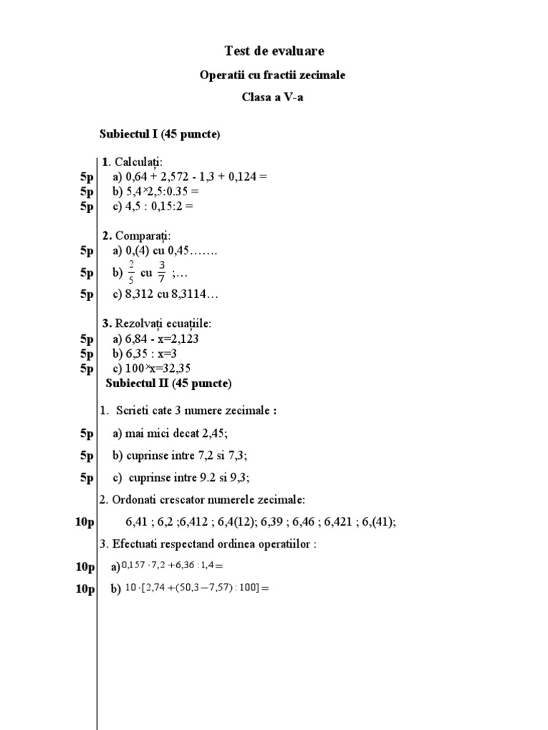 Clasa A V A Testul 1 Fracții Zecimale 1 Youtube