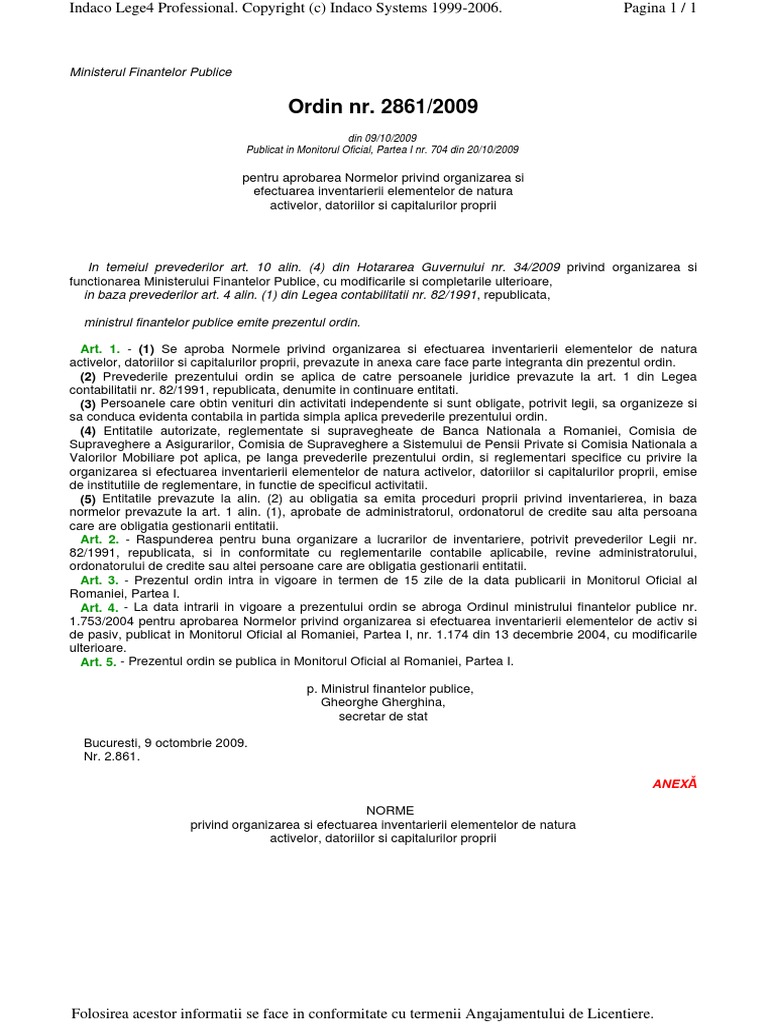 Ordin Nr 2861 2009 Organizarea Si Efectuarea Inventarierii