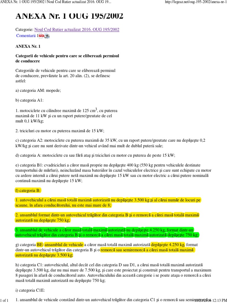 Anexa Nr 1 Oug 195 2002 Noul Cod Rutier Actualizat 2016 Oug 195 2002