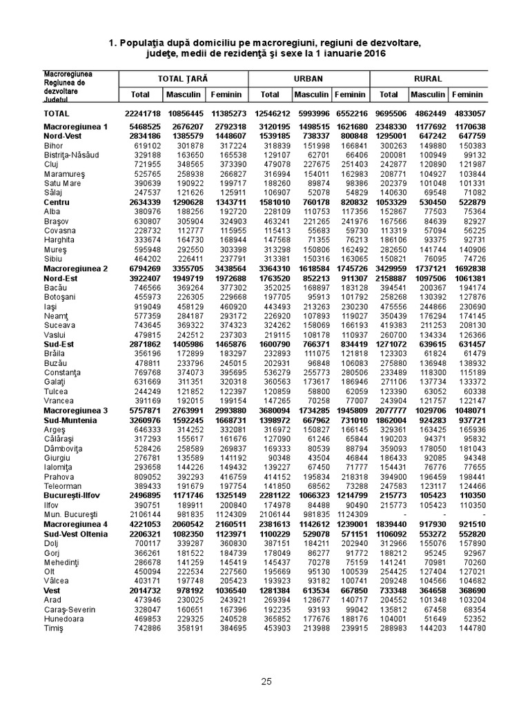 Populaţia Romaniei Pe Localitati La 1 Ianuarie 2016 Institutul Național De Statistică
