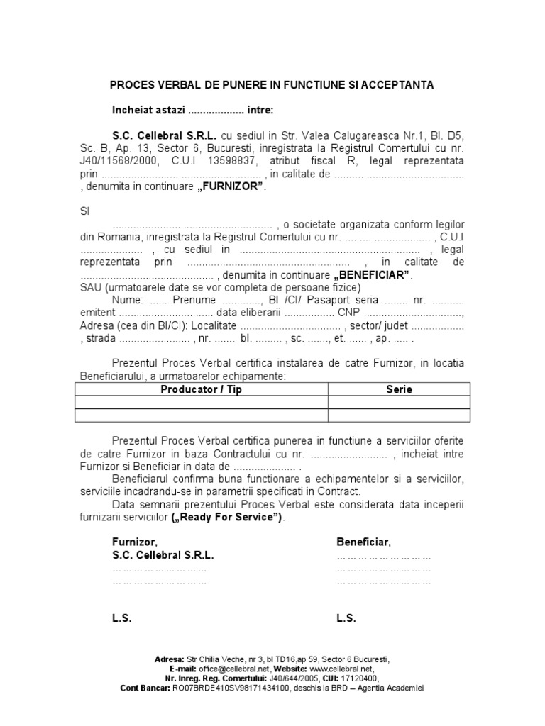 Cellebral Proces Verbal De Punere In Functiune Si Acceptanta