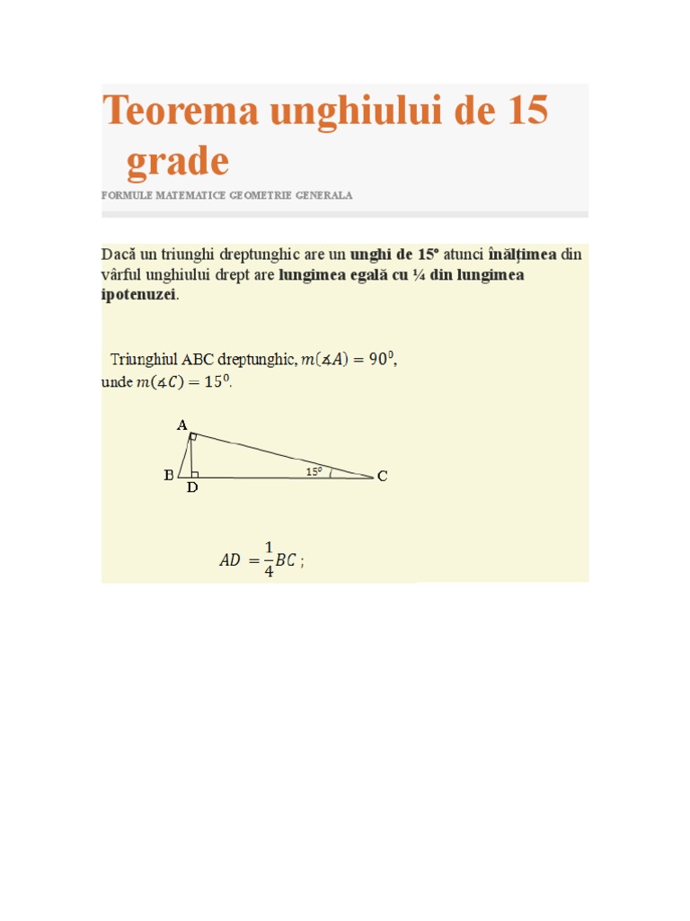 Teorema Unghiului De 15 Grade Anideșcoală Ro