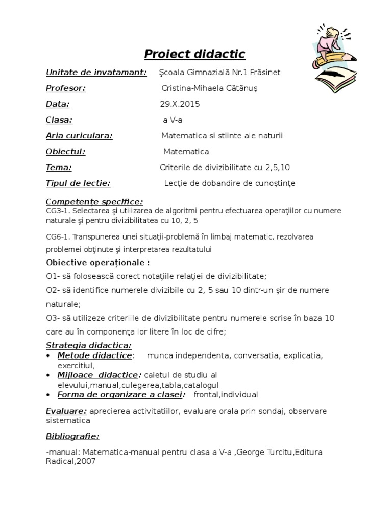 Criterii De Divizibilitate Clasa 5 Proiect De Lectie