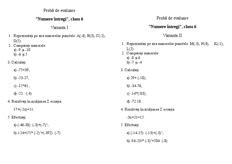 Test Clasa 6 Numere Intregi