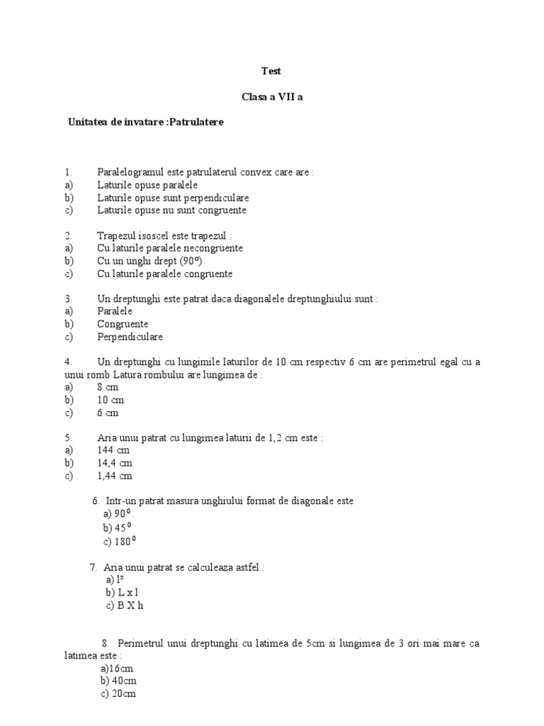 Teste Probleme Exercitii Matematica Clasa A Vii A